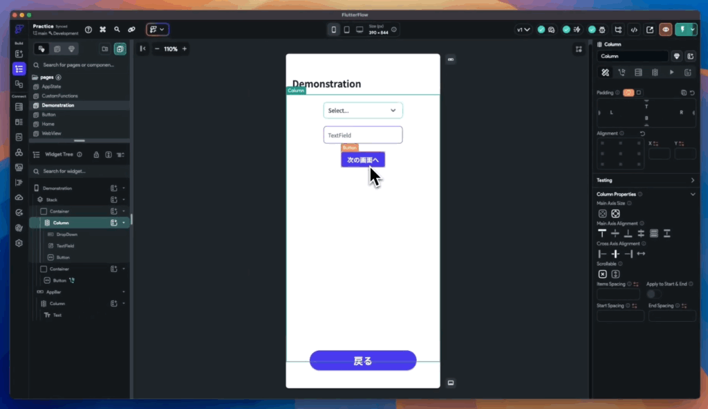 ここでは、実際にFlutterFlow上で「ユーザーが選んだ情報をApp Stateに残す」動作を作ってみます。