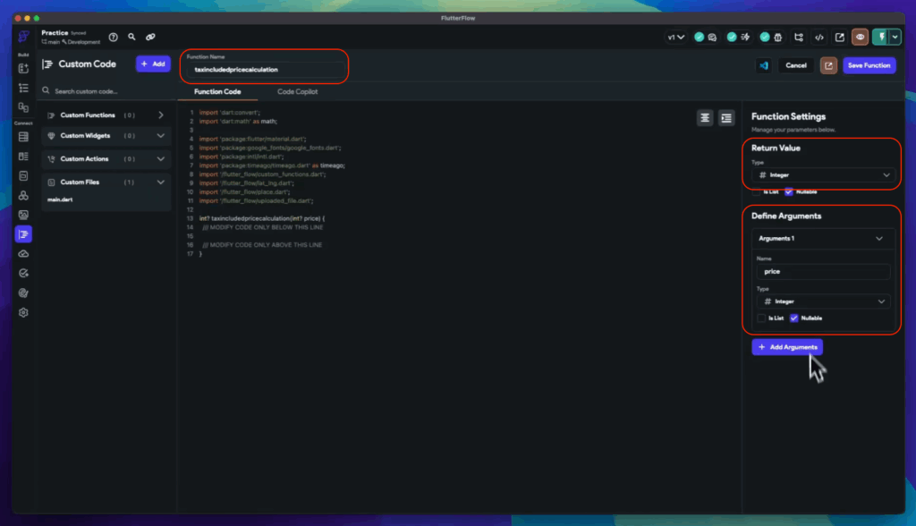 FlutterFlowのカスタムファンクションを使うと、Dart言語を使った簡単な計算やロジック処理を実行できます。